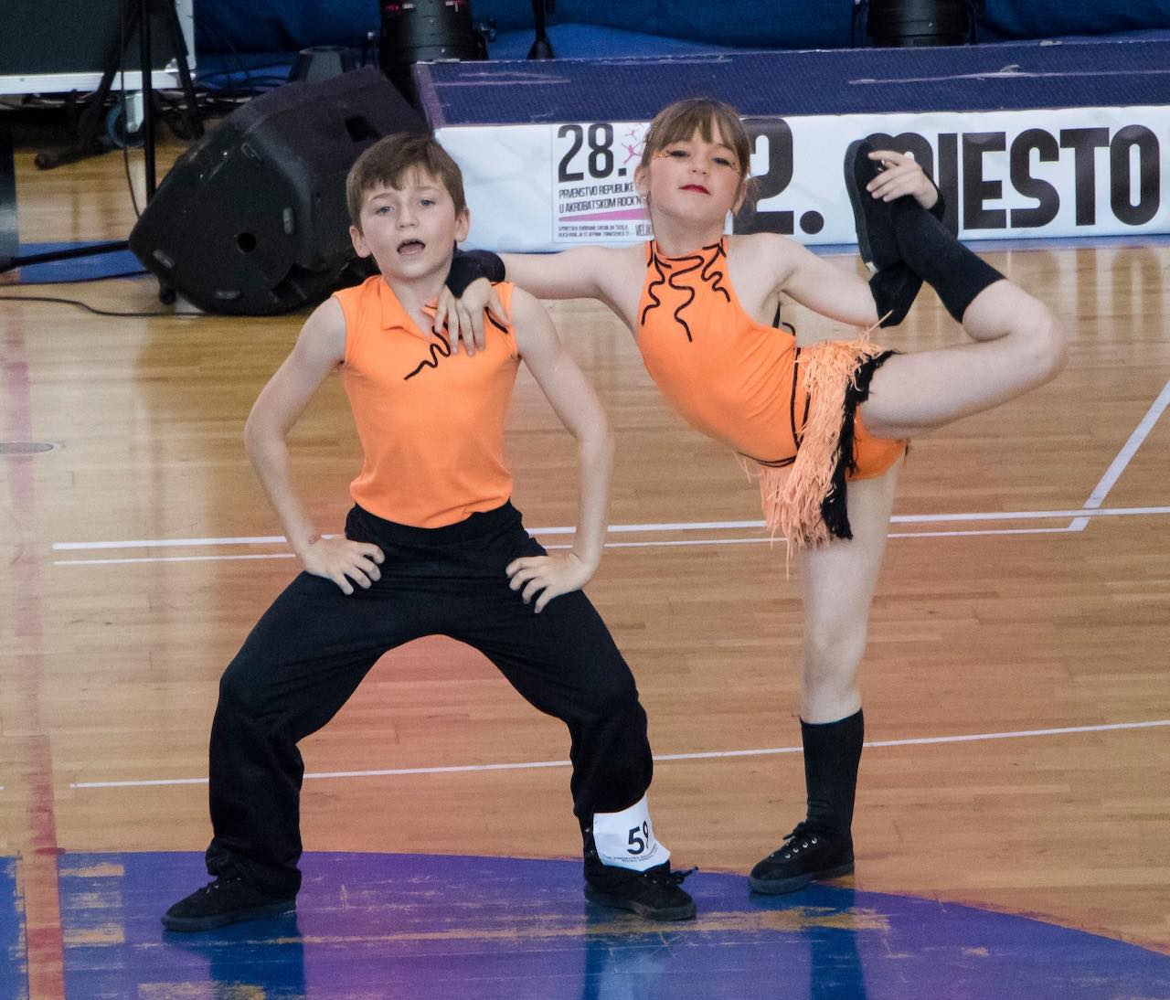 Cilj nam je, prezentirati sport i tako informirati učenike o korisnom iskorištavanju slobodnog vremena, prednosti bavljenja sportom te na taj način popularizirati akrobatski rock ‘n’ roll kao sportsku disciplinu kojom se mogu baviti. Akrobatski rock ‘n’ roll je sport, i kao takav je specifičan, ali usprkos zahtijevnosti, izuzetno je zabavan i ‘’zarazan’’. Program bi se održavao dva puta tjedno cijelu školsku godinu što jamči bolji i brži napredak djece i stvaranje budućih mladih sportaša. Polaznici tečaja će u prvim satima učiti ritam, osnovne plesne pokrete, pravilno držanje i razvijati koordinaciju. Kako će vrlo brzo savladati osnove nastavljamo s učenjem osnovnog koraka, timskih plesnih figura te plesnih figura u paru što je priprema za stvaranje prvih koreografija. Kako će im se razviti osjećaj za ritam, koorindinacija i podići samopouzdanje, u drugom dijelu školske godine pripremati ćemo ih za nastupe i/ili prva natjecanja. Podizati ćemo kvalitetu naučenog i stavljati ćemo pred njih nove izazove te ih usmjeravati prema ciljevima. Vjerujemo da ćete prepoznati višestruke koristi provođenja ovog programa, te pružiti priliku svojem djetetu da se priključi ovoj sportskoj disciplini kako bi i Vaše dijete sa sadašnjim uspješnim članovima našeg kluba gradili bolju i uspješniju budućnost. Tečaje se održava u OŠ VUKOVINA, OŠ VELIKA MLAKA, OŠ EUGENA KUMIČIĆA, OŠ JURJA HABDELIĆA, OŠ EUGENA KVATERNIKA I OŠ ŠĆITARJEVO. Vaša škola nije na popisu? Ne brinite, dođite u onu koja vam najviše odgovara. Pročitajte više o Akrobatskom Rock ‘n’ Rollu i otkrite njegove čari! Cilj tečaja